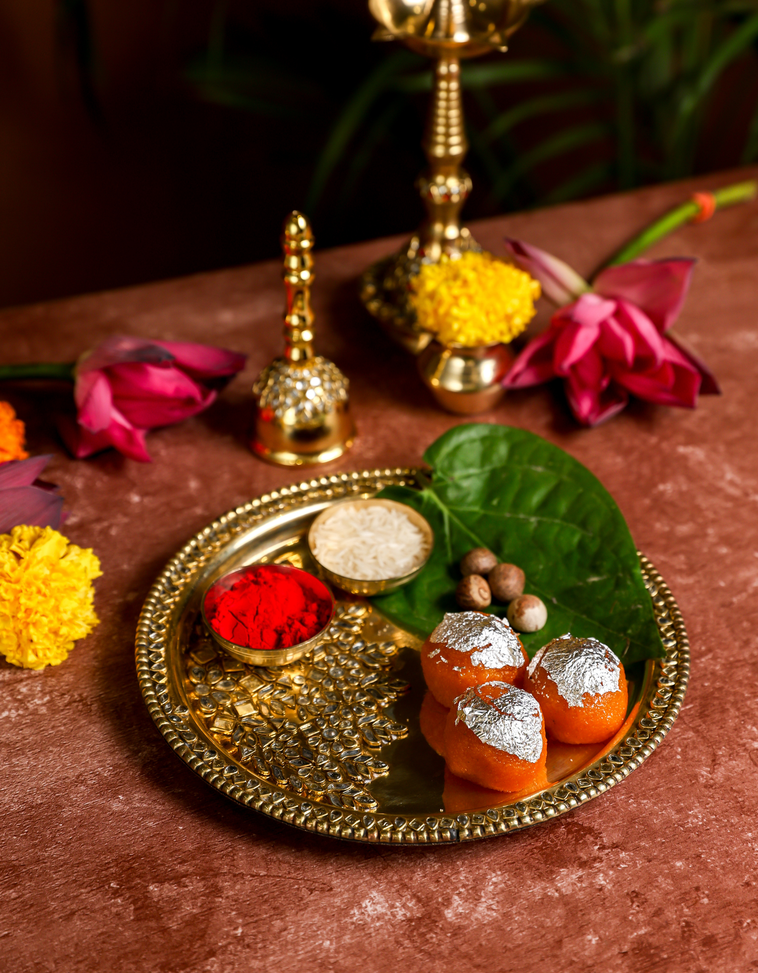 Adorned with intricate Kundan work, it adds a royal charm to your rituals.